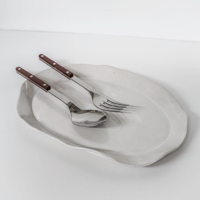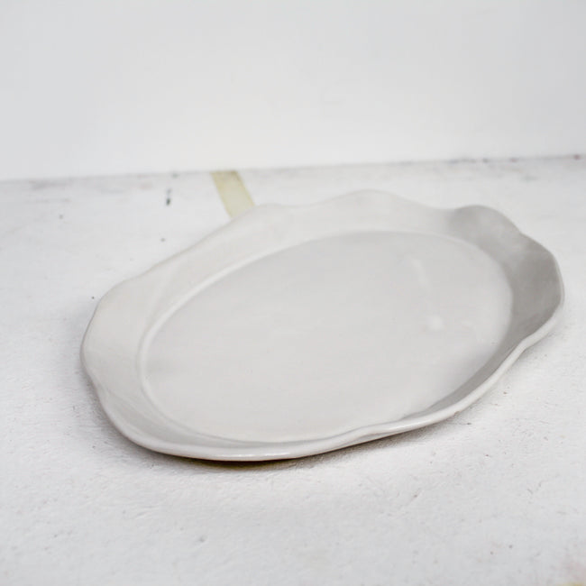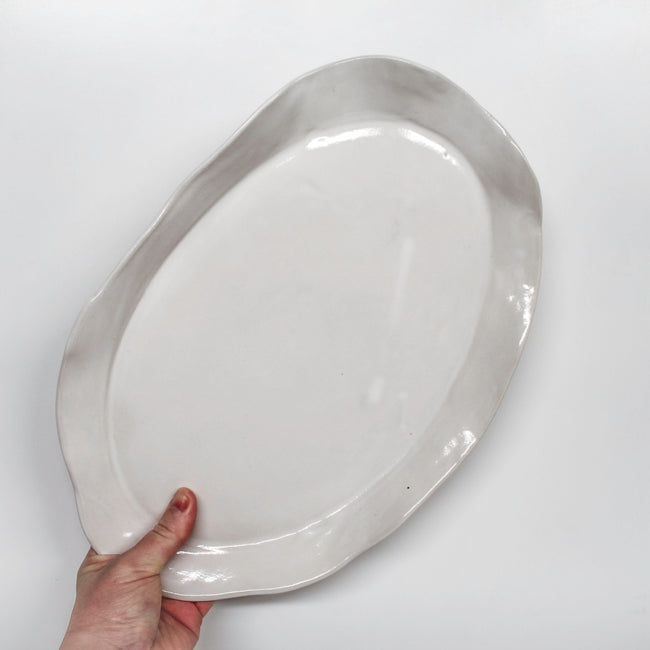 a one of a kind oval platter, hand shaped from stoneware clay.
