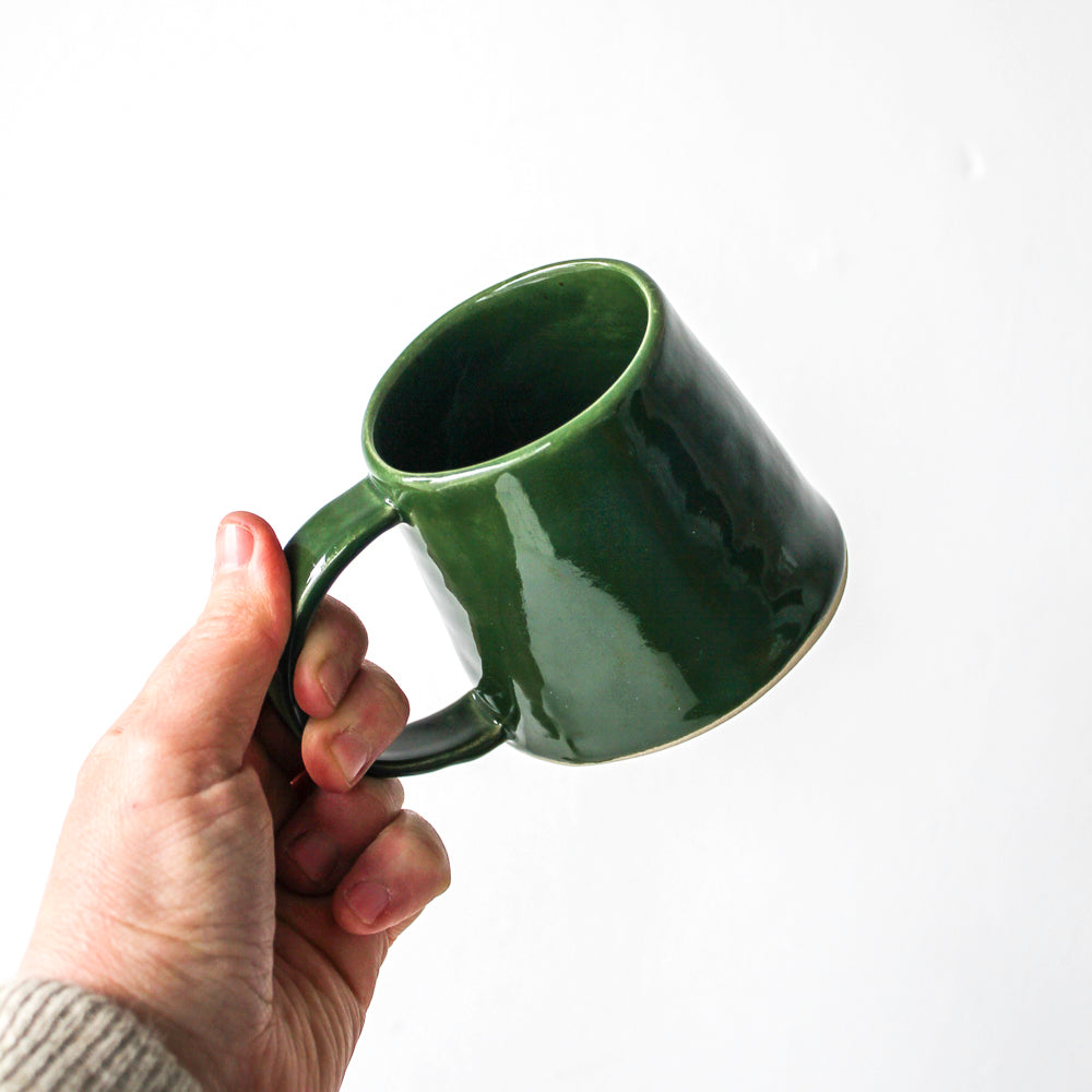 each mug is hand built using slab building techniques. its a sweet cup to use and would look great mixing and matching with your other cool mugs.